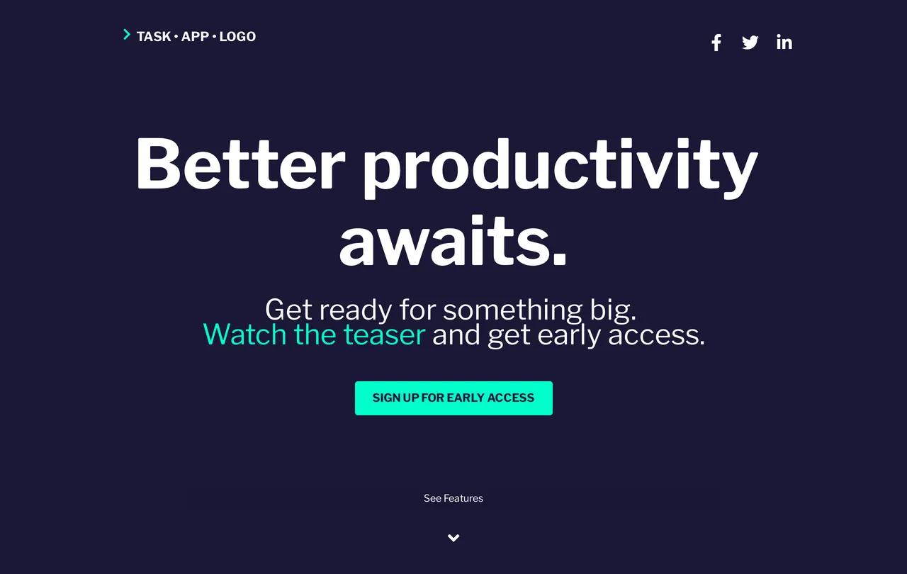 Bold Dark App Launch Page