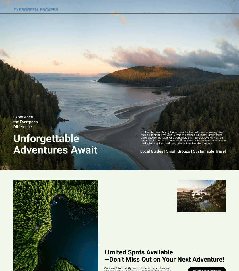 Showcase your business with elegant Evergreen travel sales page Free Website Templates.