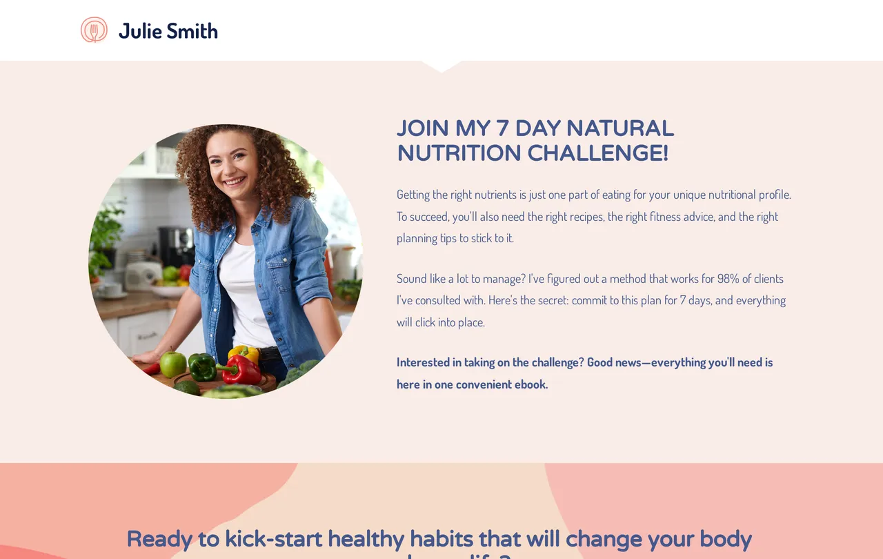 Bring your ideas to life with our Fitness & Nutrition Challenge Opt-in Page Free Website Templates.