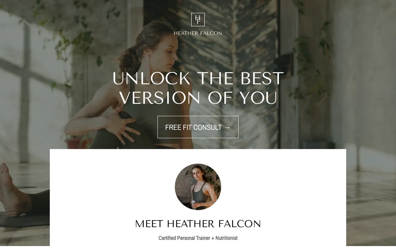 Showcase your business with elegant Fitness + Wellness Coach Consult with Bio Free Website Templates.