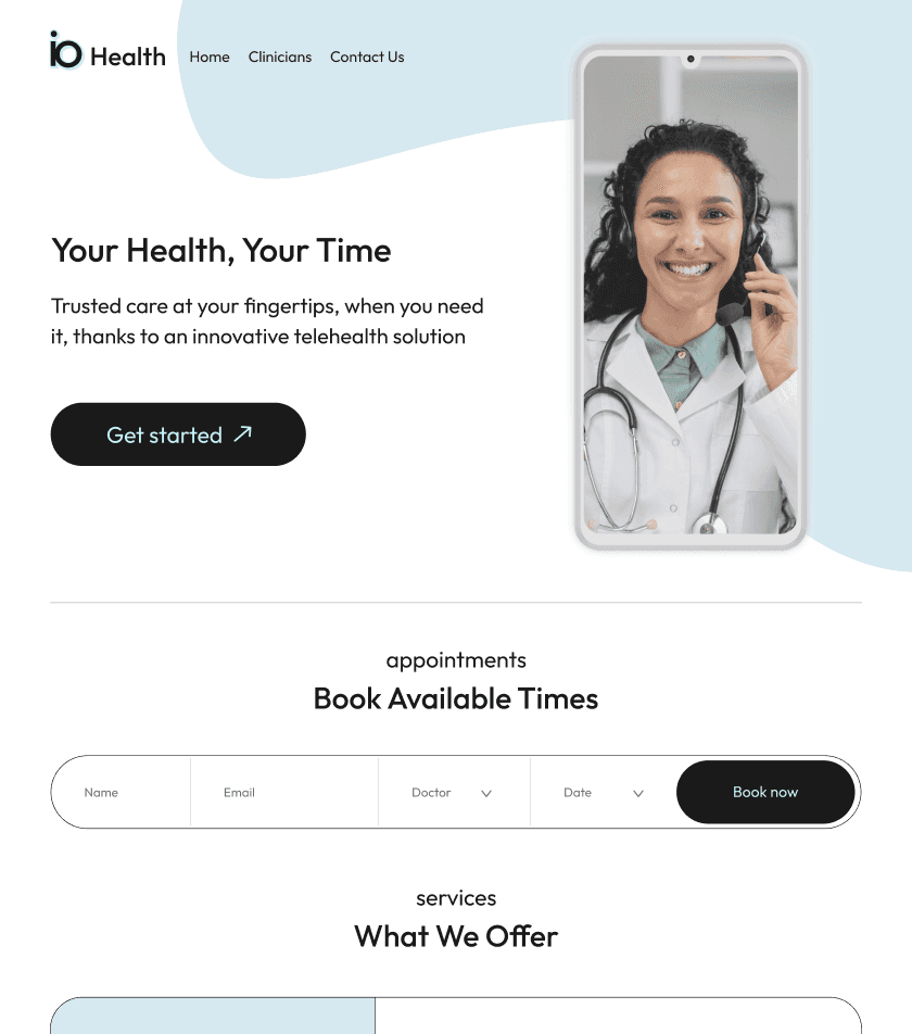 Discover high-quality IO Health telehealth booking page Free Website Templates for every use case.