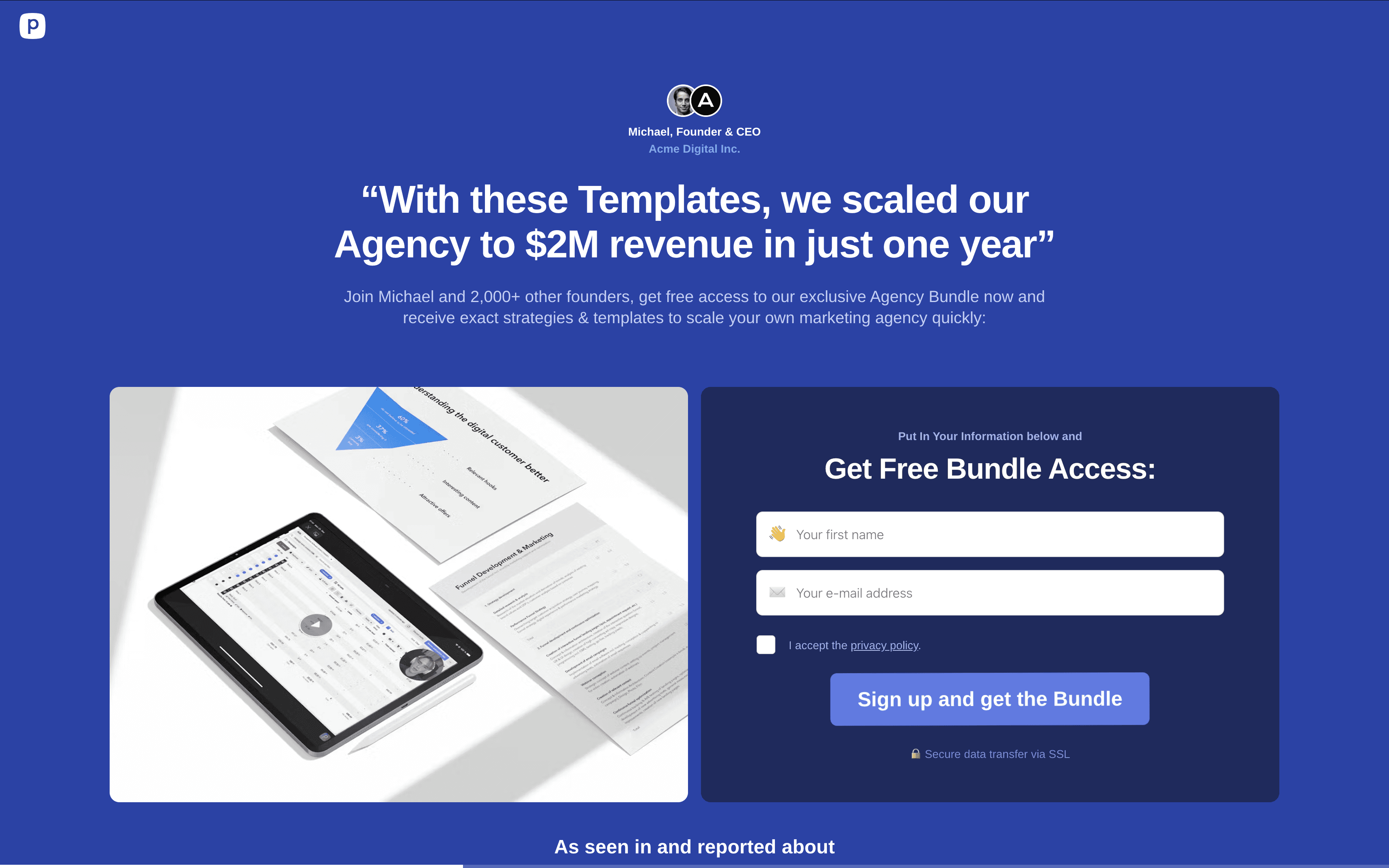 Clean and creative Lead Magnet Free Website Templates, ready to publish.