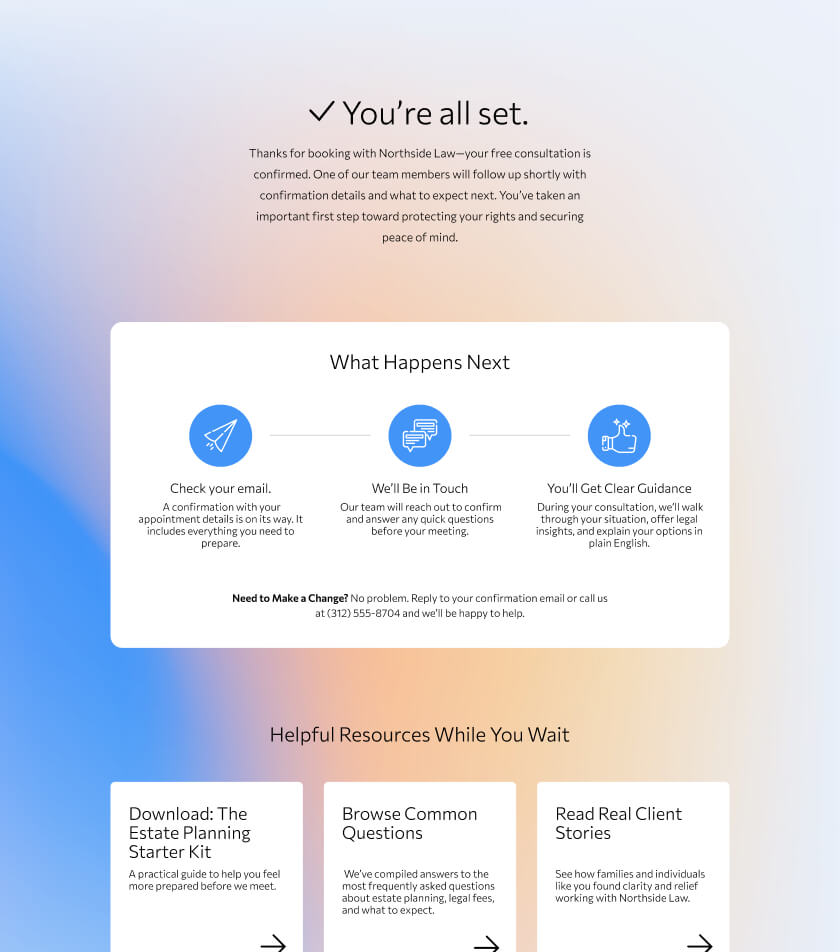 Get noticed with bold and sleek Northside law firm thank you page Free Website Templates.