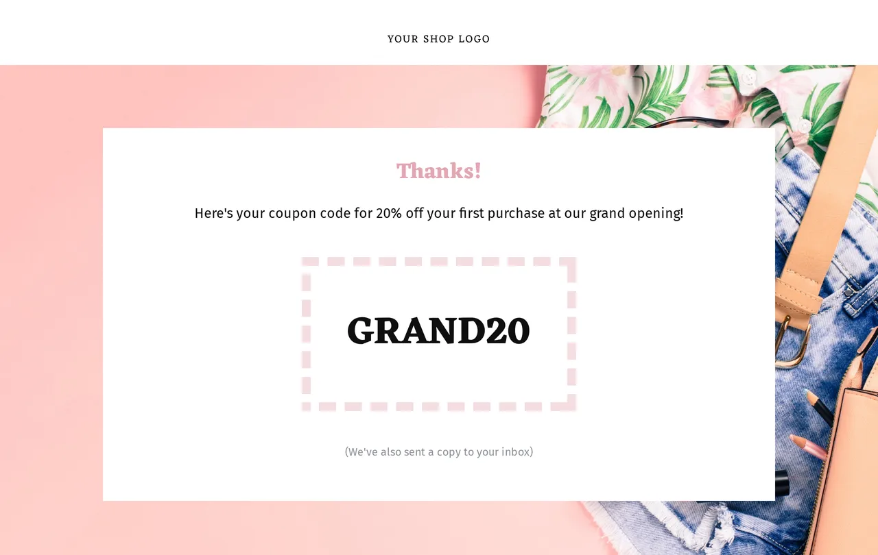 Shop Coupon Thank You Page