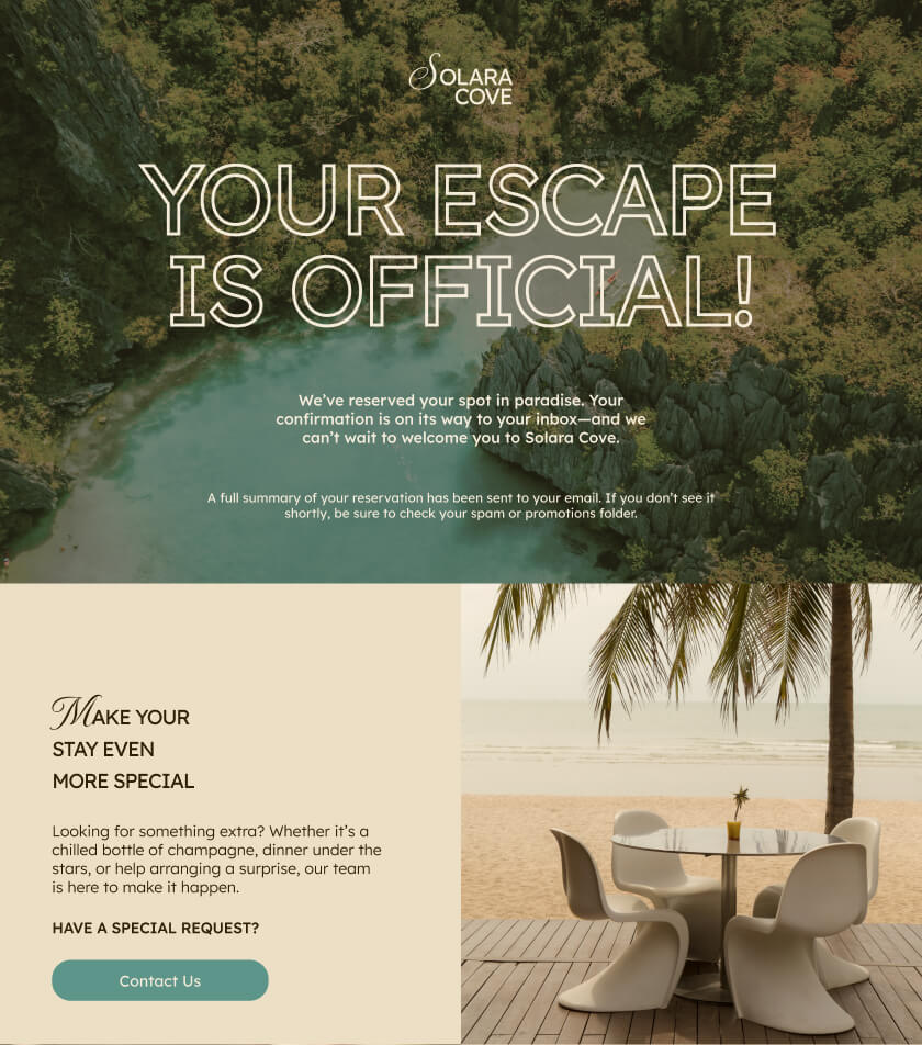 Solara travel thank you page