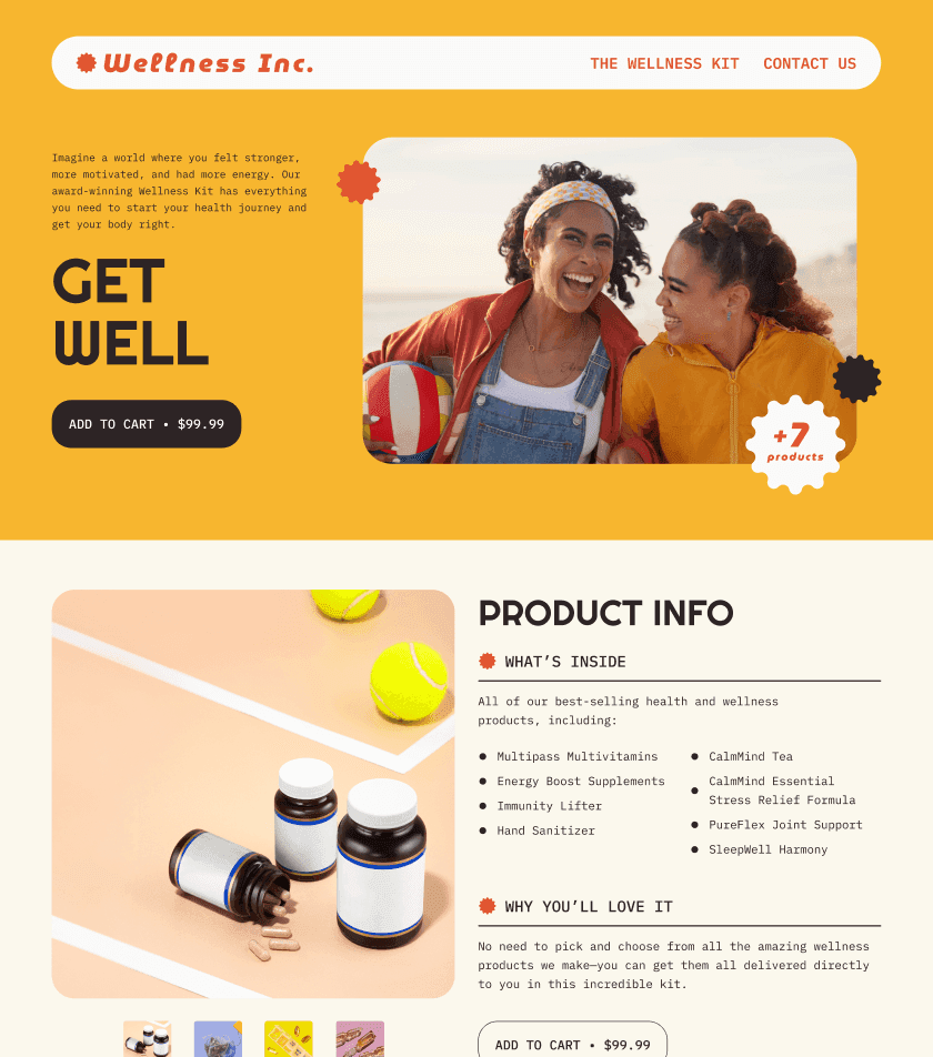 Build beautiful sites with curated Wellness Inc. sales page Free Website Templates.